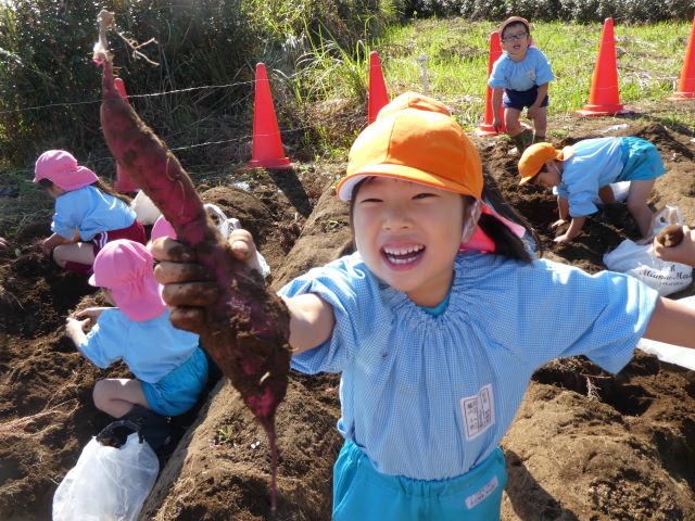 自分たちで植えた芋の苗から、大きなお芋がとれる感動を・・自分が掘って持ち帰ったお芋を家族が喜んで食べてくれる喜びを・・大地の恵みに感謝の心を・・次の日には美味しく調理されたお芋の話を聞かせてくれる子どもたちです。