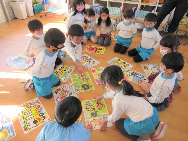 地震・津波・火災・不審者等の避難訓練を月1回行っています。自由遊びの時、バスに乗っている時等あらゆる場面を想定し、子ども自身も身を守る方法を身に付けていきます。津波の避難訓練では目の前の市役所4階まで全園児で避難します。